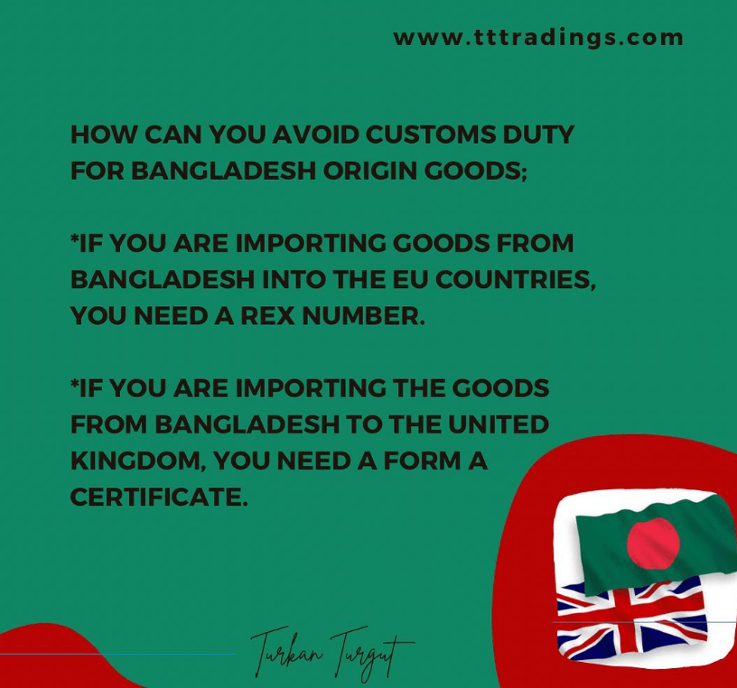 How can you avoid customs duty for Bangladesh origin goods;